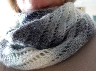 Knitting time now. I finished knitting Abi's snood on Sunday. I do have to block it and sew it up but that will have to wait. That cute little penguin is what Abi bought me when I was hospital. Isn't it sweet?