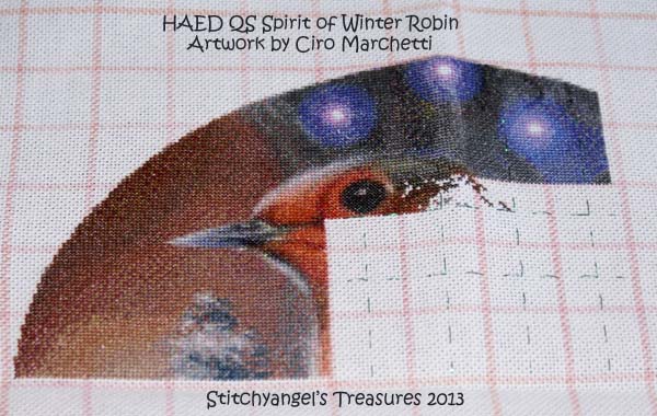 I seem to have done really well on HAED QS Spirit of Winter Robin. Last night I was still stitching away at 11.30 pm. Big mistake as I feel so tired today! Doesn't he look gorgeous?!